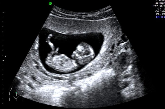 A pregnancy sac is visible usually at 5 weeks of gestation (calculated from the last menstrual period). A yolk sac becomes visible inside the pregnancy sac as the pregnancy grows and the mean sac diameter reaches 8-10mm. After this a small embryo becomes apparent at about 6 weeks. When the embryo becomes 4mm (6weeks and 2 days), the fetal heart should be visible. By 8 weeks the embryo is readily seen on abdominal scan. Fetal limb buds are seen at 9-10 weeks with body movements.